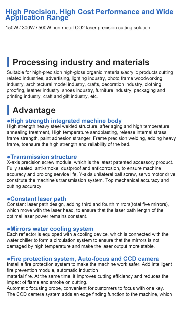 150W 1325S-CCD Non-metal CO2 Laser Cutting Machine for Acrylic