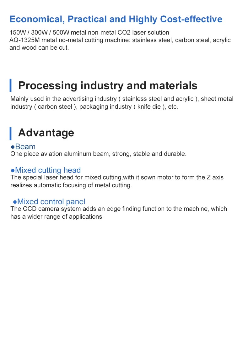 150W / 300W / 500W 1325M No-Metal CO2 Laser Cutting Machines Forstainless Steel Carbon Steel Acrylic and Wood Can Be Cut