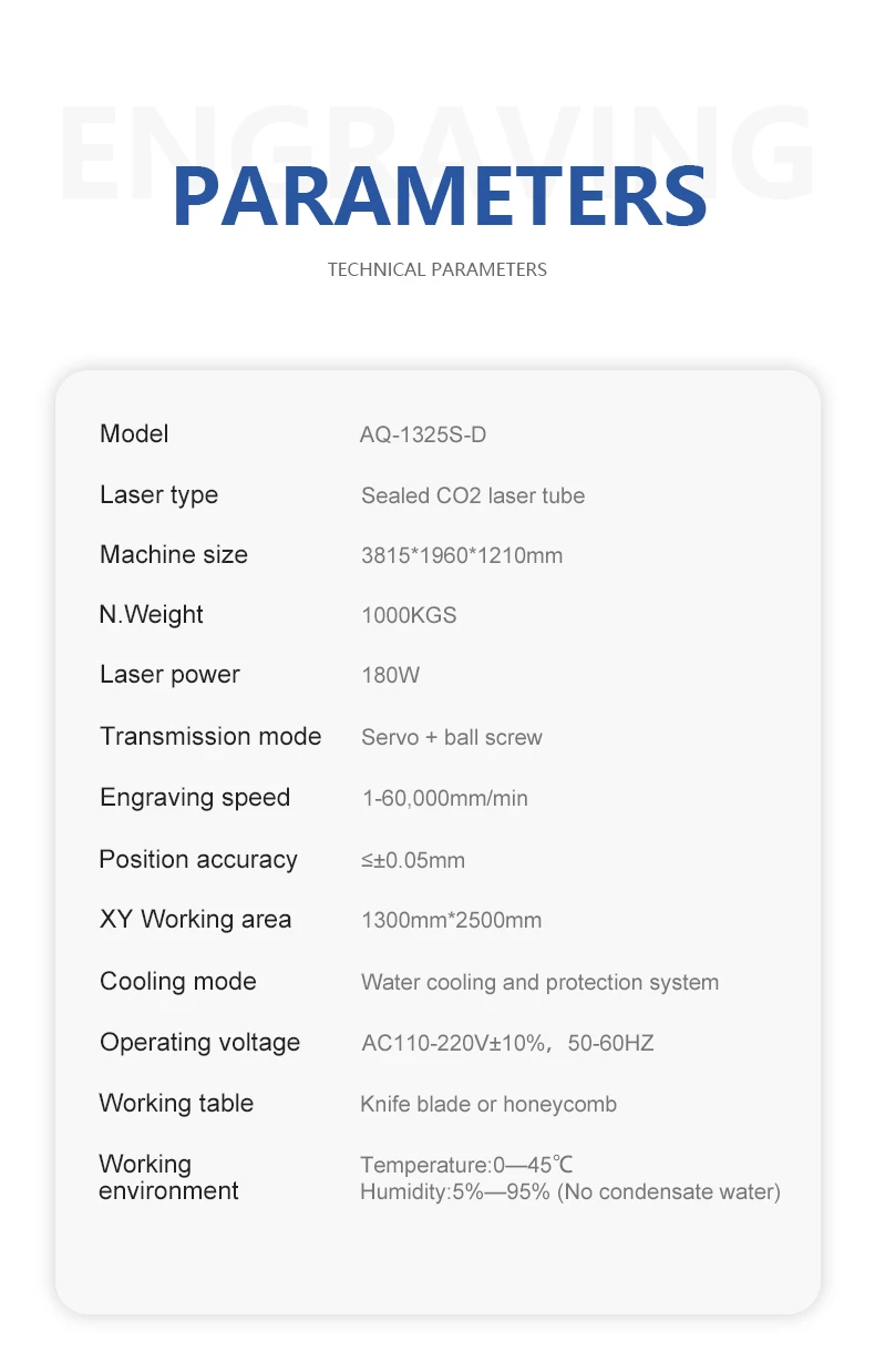 180W 1325S-D Non-Metal CO2 Laser Cutting Machines for Film and Other Engraving Marking Processing Fields.