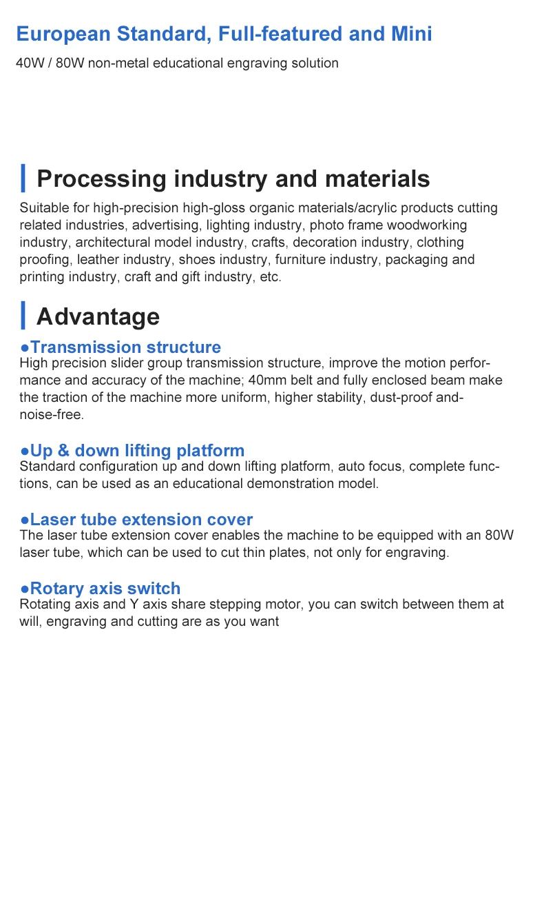 80W 6040C Co2 Laser Cutting Machine for Decoration Industry Acrylic Products Cutting Related Industries