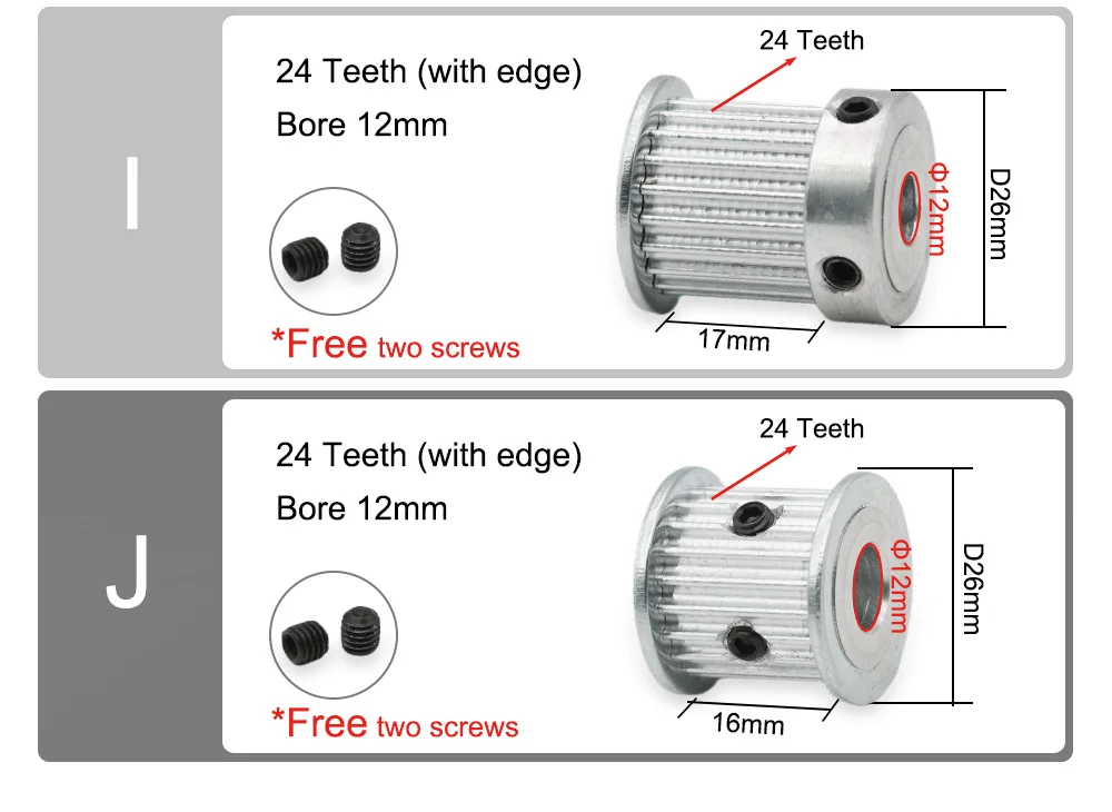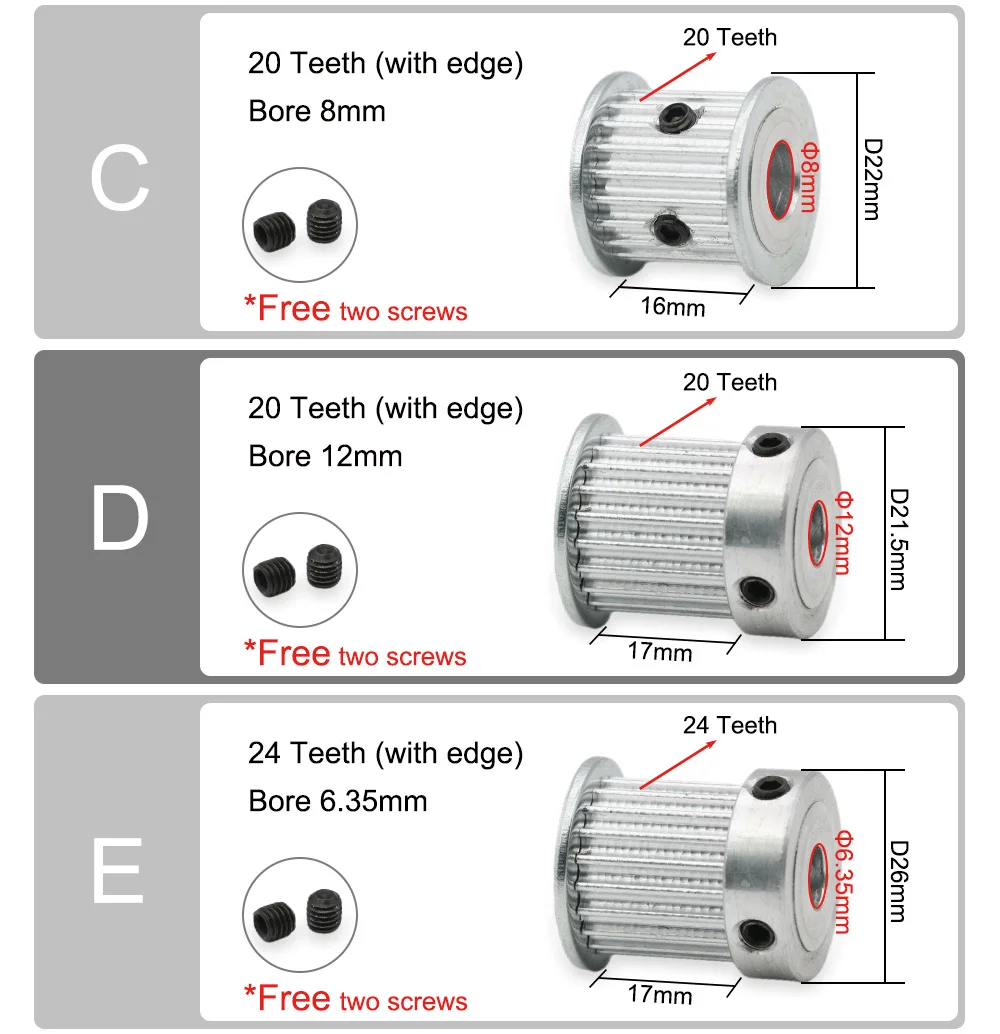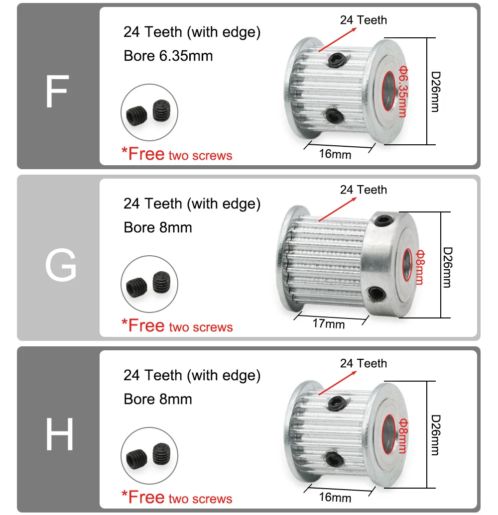 QDLASER HTD 20/24 Teeth Timing Pulley 6.35/8/12mm for DIY CO2 Laser Engraving Cutting Machine Thgears