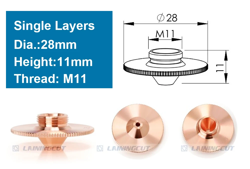 QDLASER Laser Bulge Nozzle Single Layer D28 H15 Caliber 0.8 - 4.0HD for Precitec 1064nm Fiber Laser Cutting Head