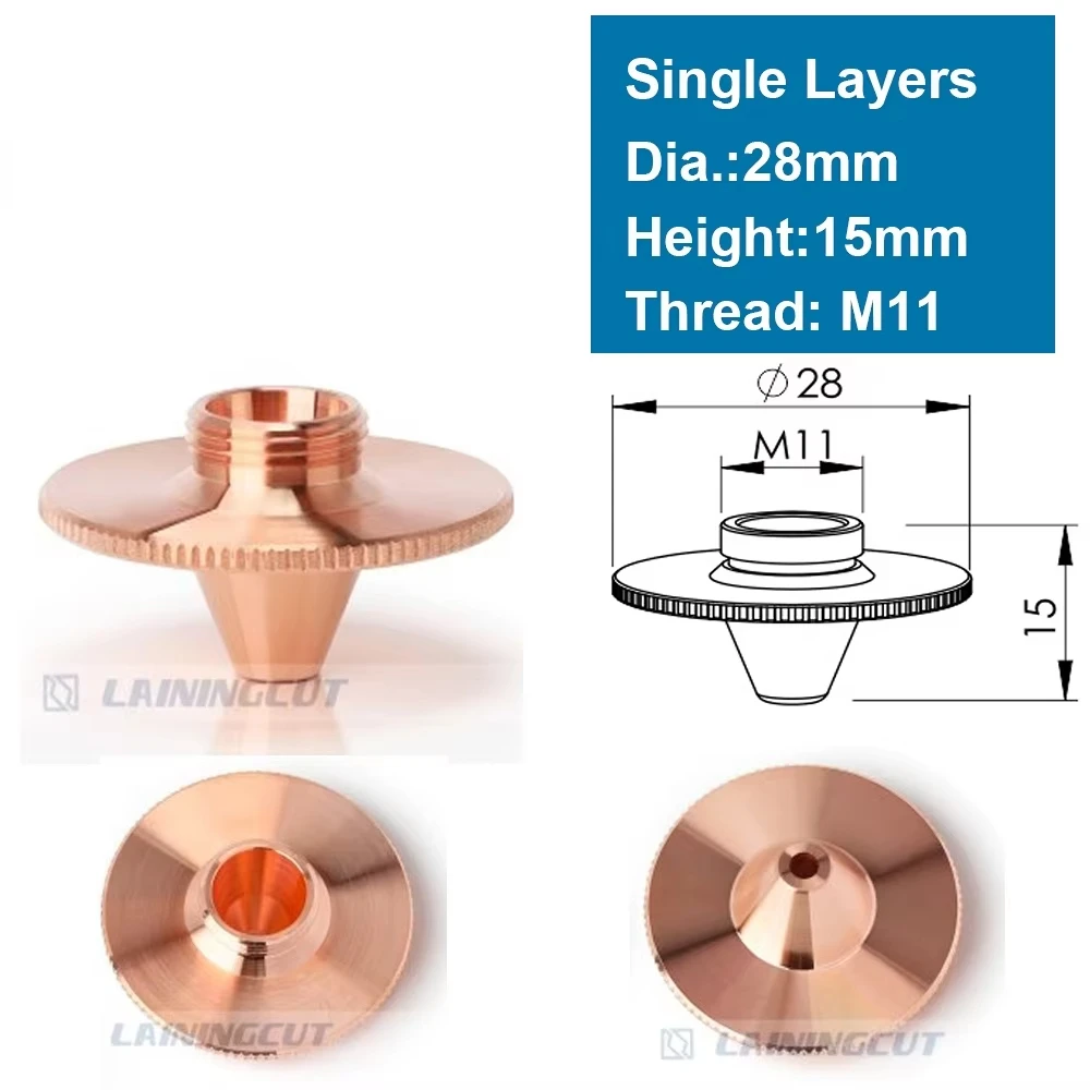 QDLASER Laser Bulge Nozzle Single Layer D28 H15 Caliber 0.8 - 4.0HD for Precitec 1064nm Fiber Laser Cutting Head