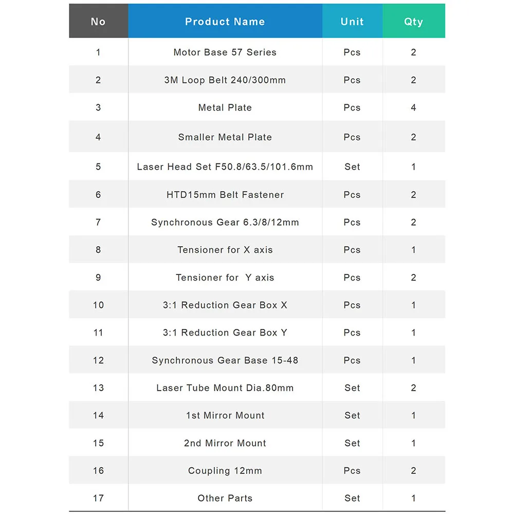 QDLASER Laser Cutting Machine Spare Parts Set Single Head for 6090 1390 1410 Co2 Laser Mechanical Parts
