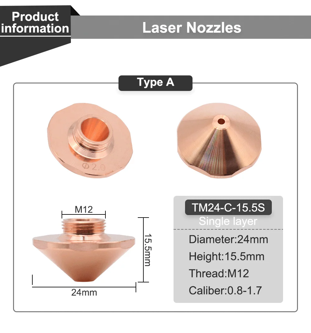QDLASER Laser Fiber Optic Cutting Nozzle Caliber 0.8mm-1.7mm Single Layer Dia.24 for Trumpf Fiber Laser Cutting Head