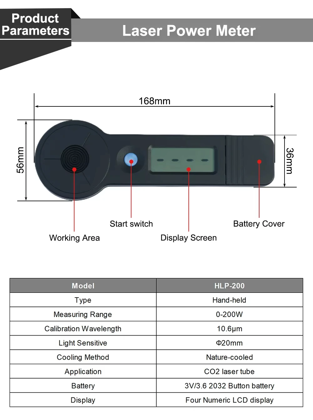 QDLASER Laser Handheld Power Meter HLP-200B 0-200W High Accuracy for Co2 Laser Engraving Cutting Machine Laser Tube Dynamometer