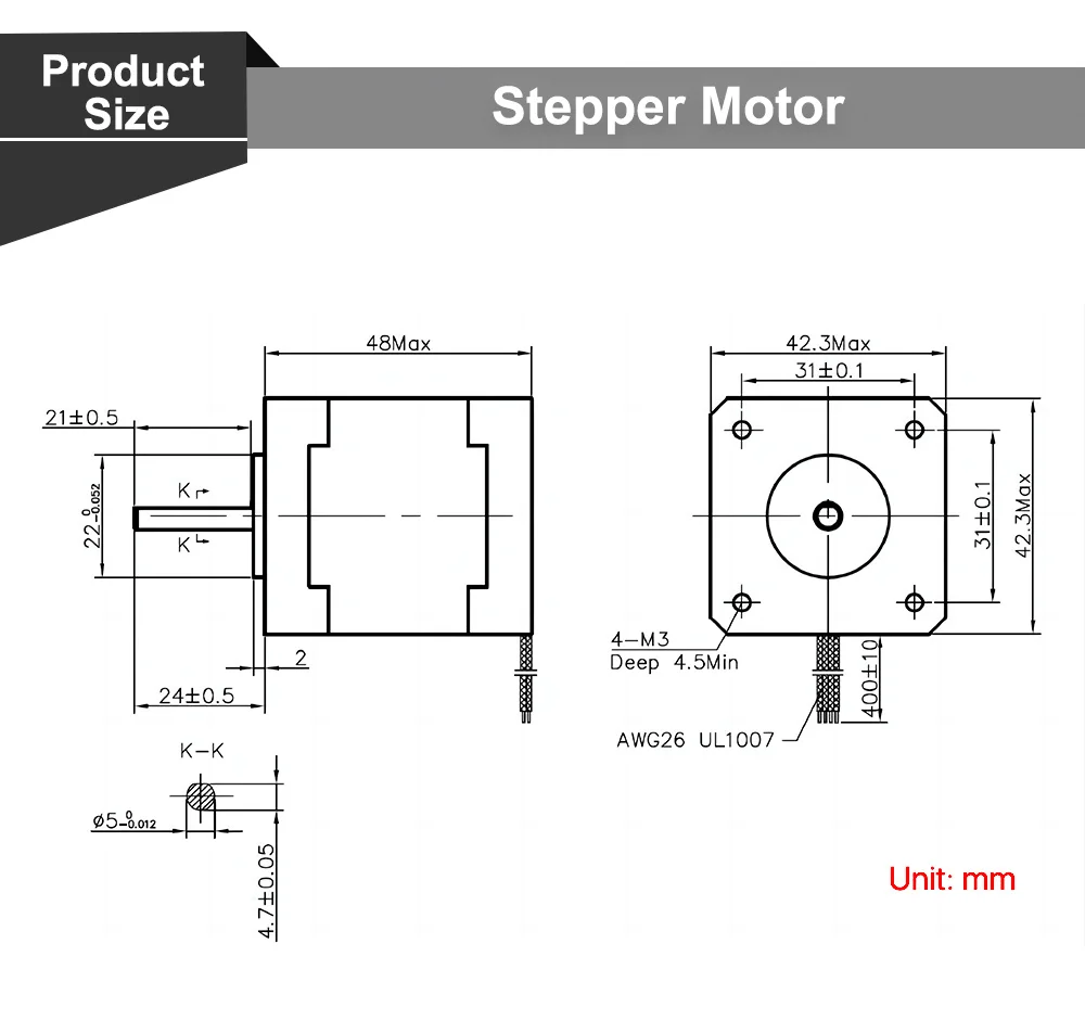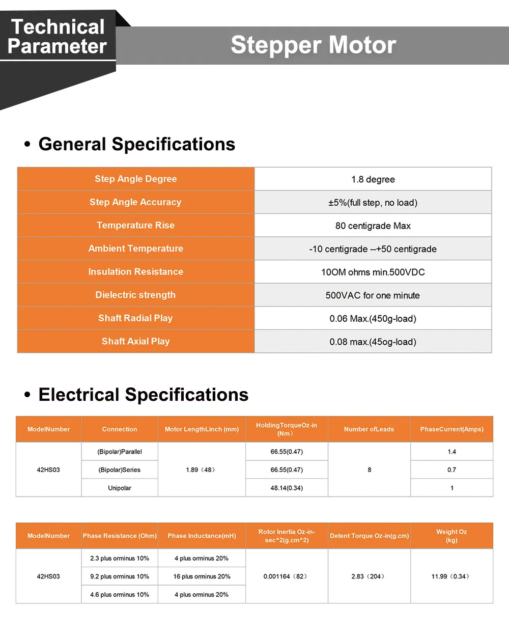 QDLASER Leadshine 42HS03 2 phase Stepper Motor 0.7A 0.47NM 48mm Length Shaft 8mm for Co2 Laser Machine CNC 3D Print Machine