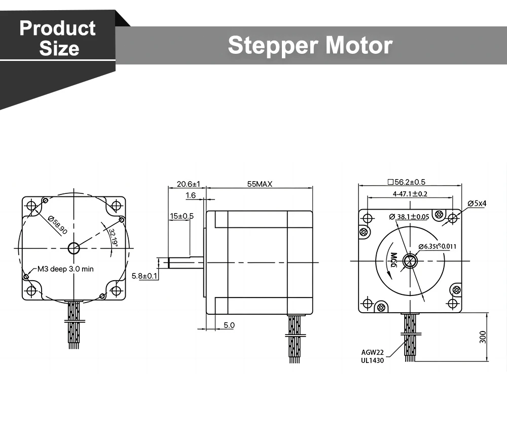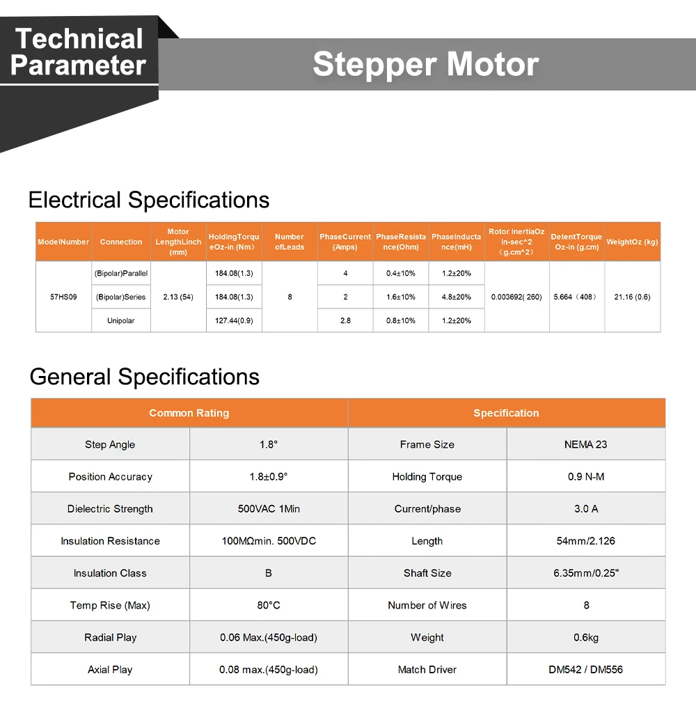 QDLASER Leadshine 57HS09 2 Phase Stepper Motor NEMA23 3.0A 0.9NM Length 55mm Shaft 6.35mm for Co2 Laser Engraving Machine