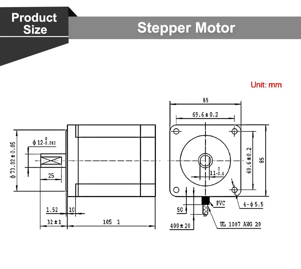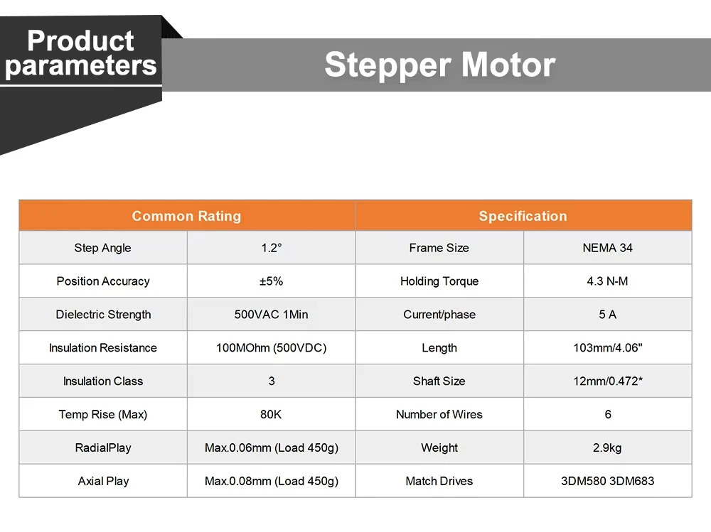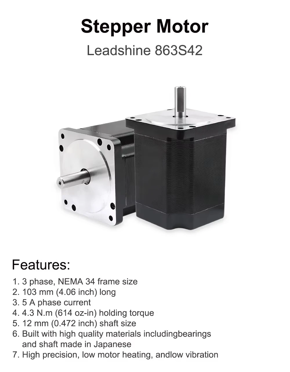 QDLASER Leadshine 863S42 3 Phase Stepper Motor for NEMA34 4.3A Length 103mm (4.06 Inch) Shaft 12mm (0.472 Inch)