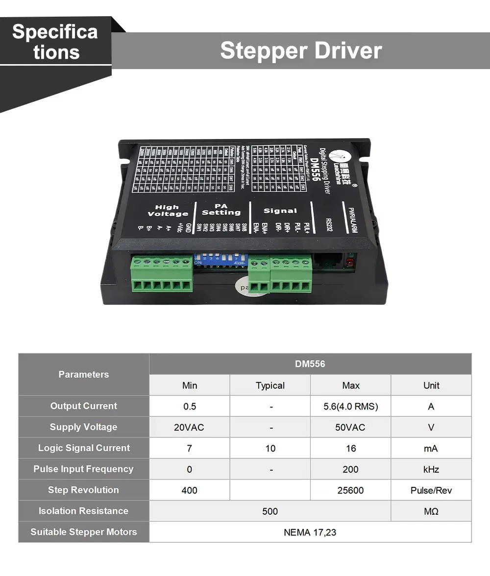 QDLASER Leadshine DM556 2 Phase Stepper Driver 20-50VAC 0.5-5.6A 7-16mA