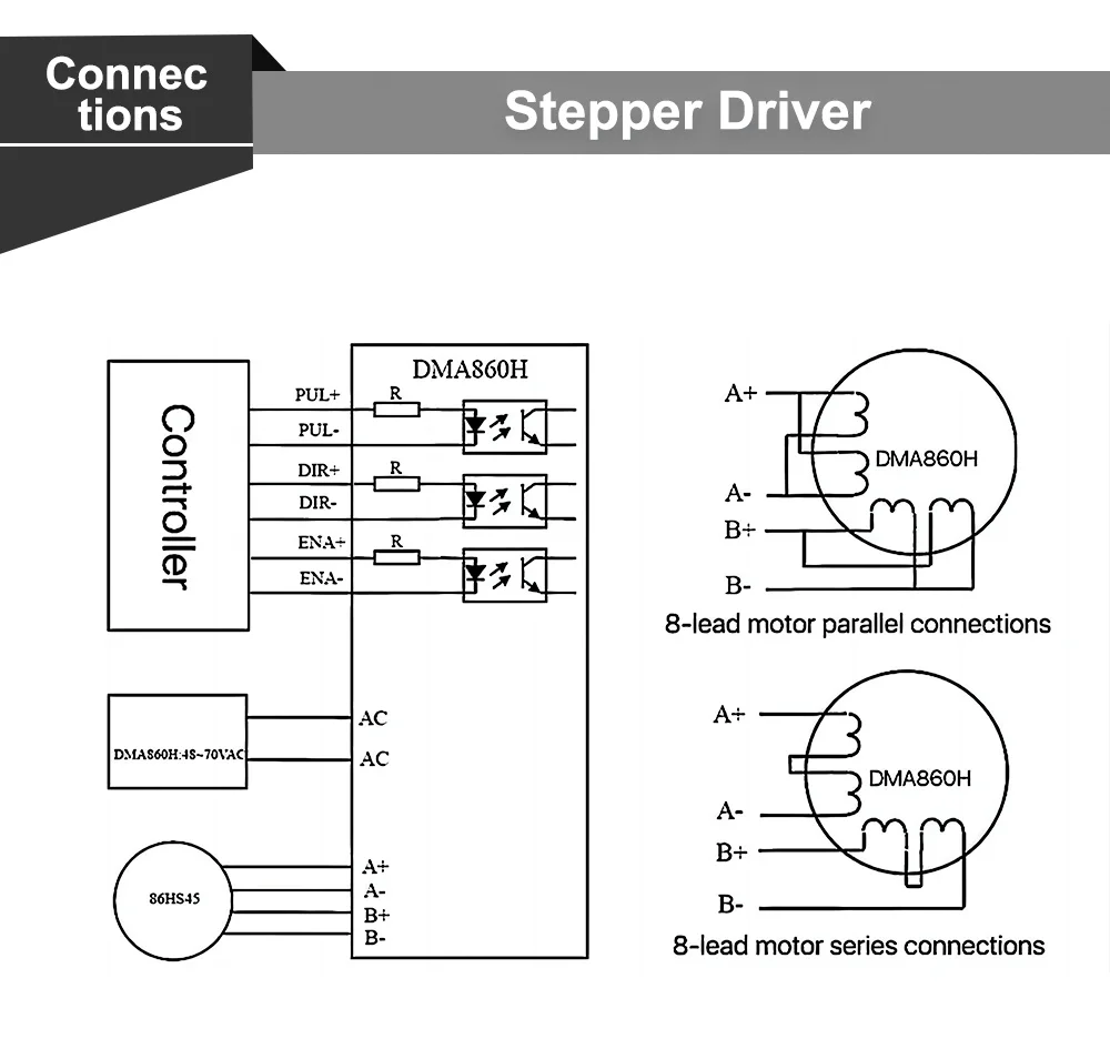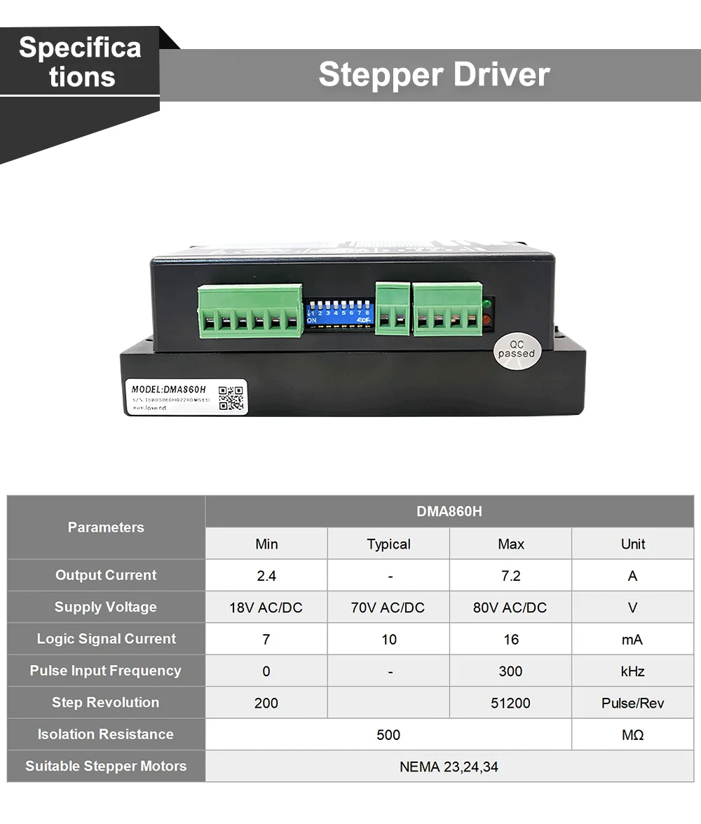 QDLASER Leadshine Stepper Driver DMA860H 2 Phase 18-80VAC 2.4-7.2A for CNC Machine Co2 Laser Cutting and Engraving Machine