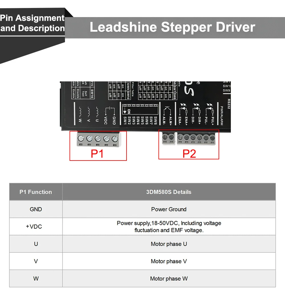 QDLASER Leadshine Stepper Motor Driver 3DM580 3 Phase 18-50VDC 1.0-8.0A Upgrade 3DM580 for CO2 Laser Cutting Engraving Machine