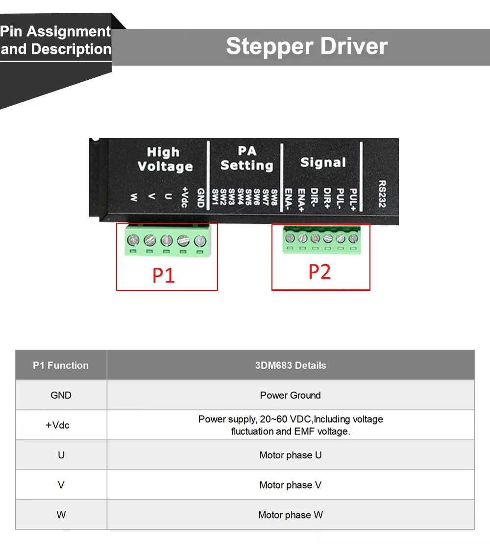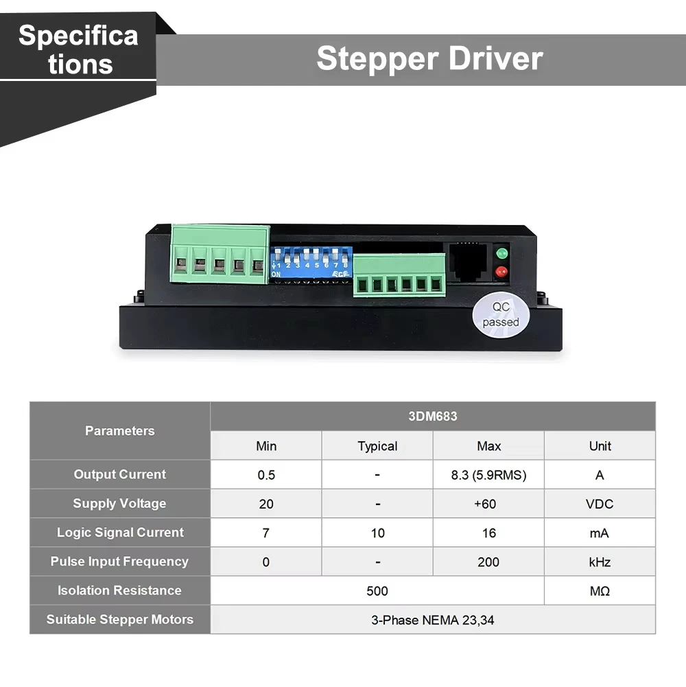 QDLASER Leadshine Stepper Motor Driver 3DM683 3 Phase 20-60VDC 0.5-8.3A for Nema23 Nema34 Motor Controller