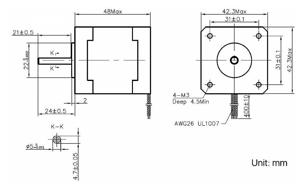 QDLASER NEMA17 2-Phase 42HS03 1.8 Degree China Hybrid Step Stepper Motor