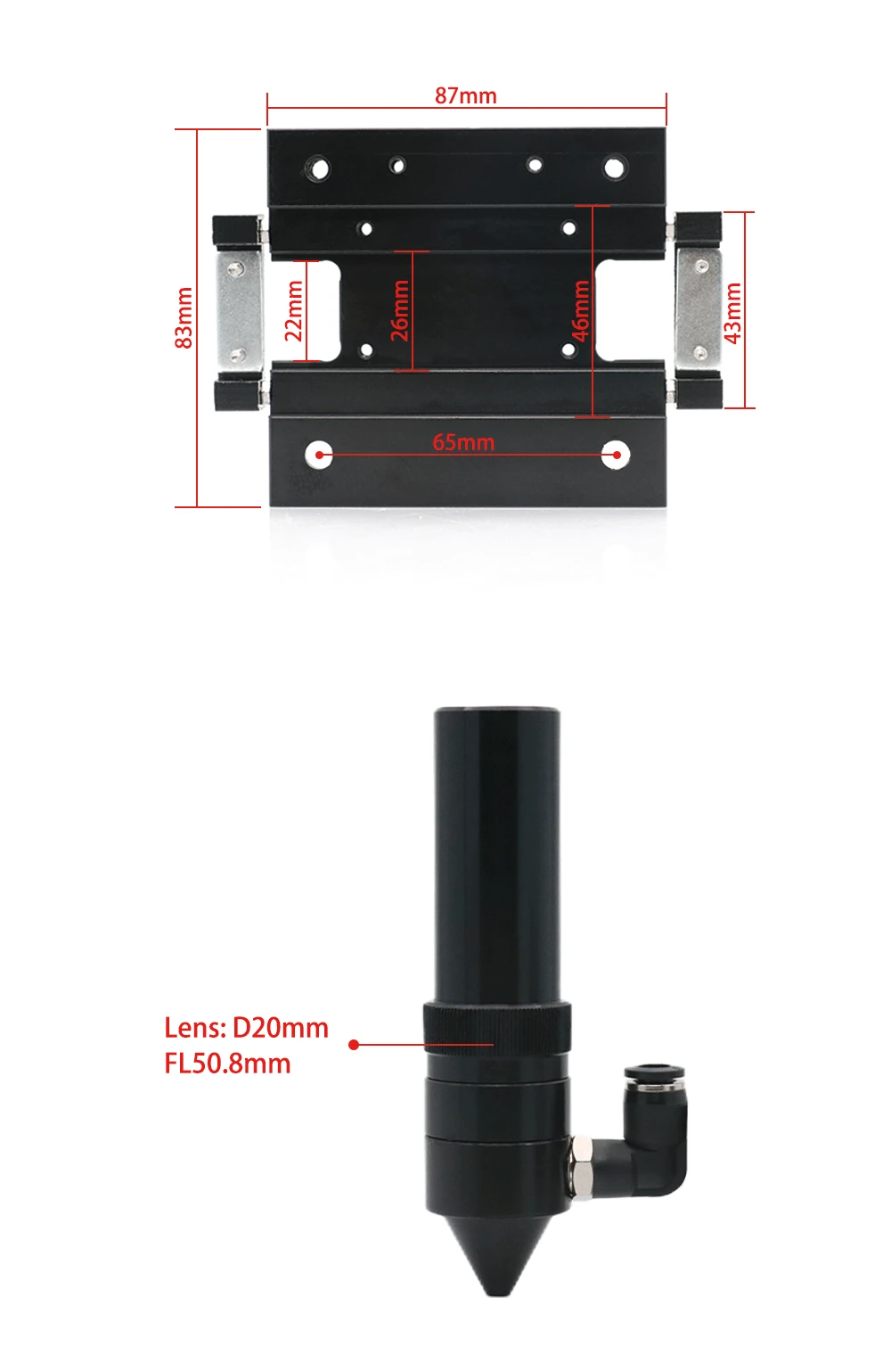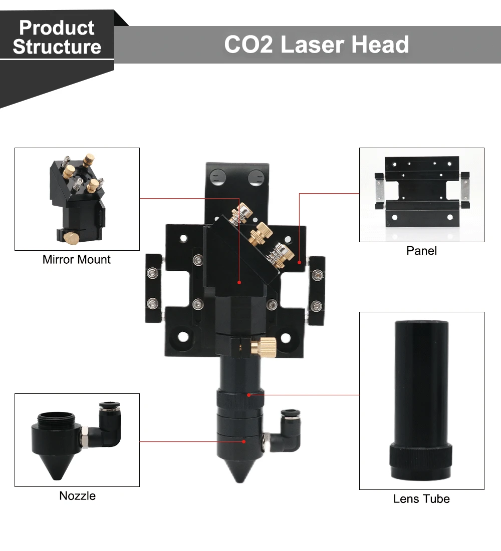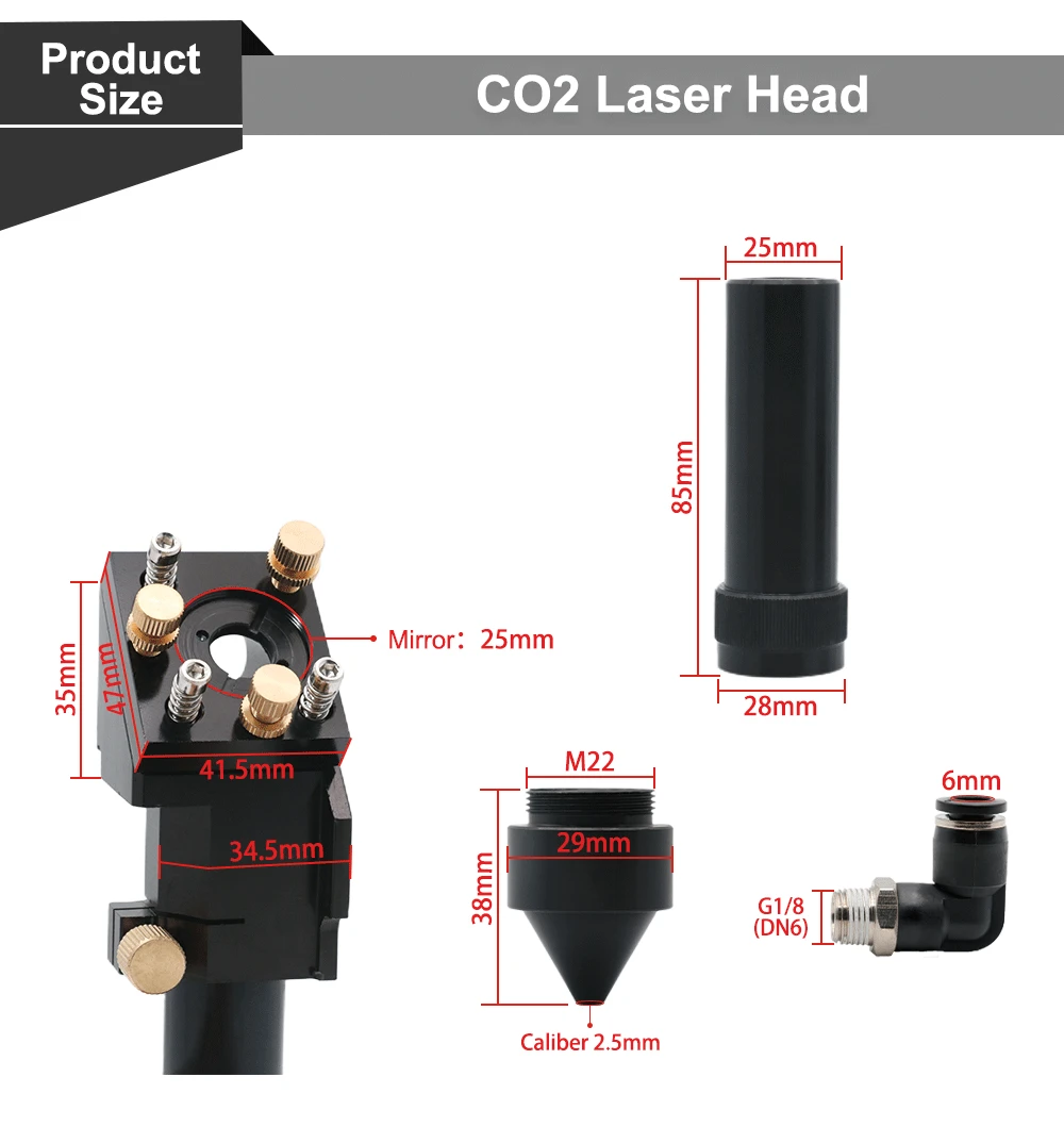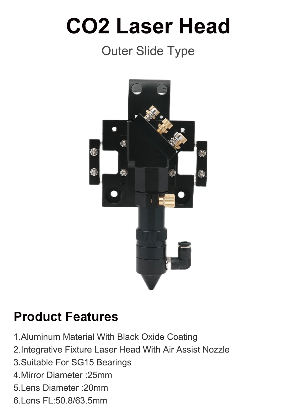 QDLASER New Arrival CO2 Laser Head for Dia.20mm FL 50.8/63.5mm Lens D25mm Mirror Outer Slider Type with Air Assist Nozzle