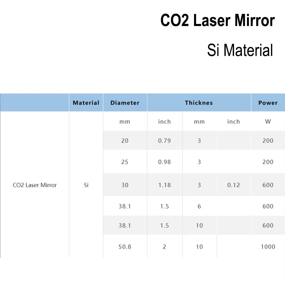QDLASER New Co2 Laser Si Reflective Mirrors for Laser Engraver Gold-Plated Silicon Reflector Lenses Dia. 20 25 30 38.1 50.8mm