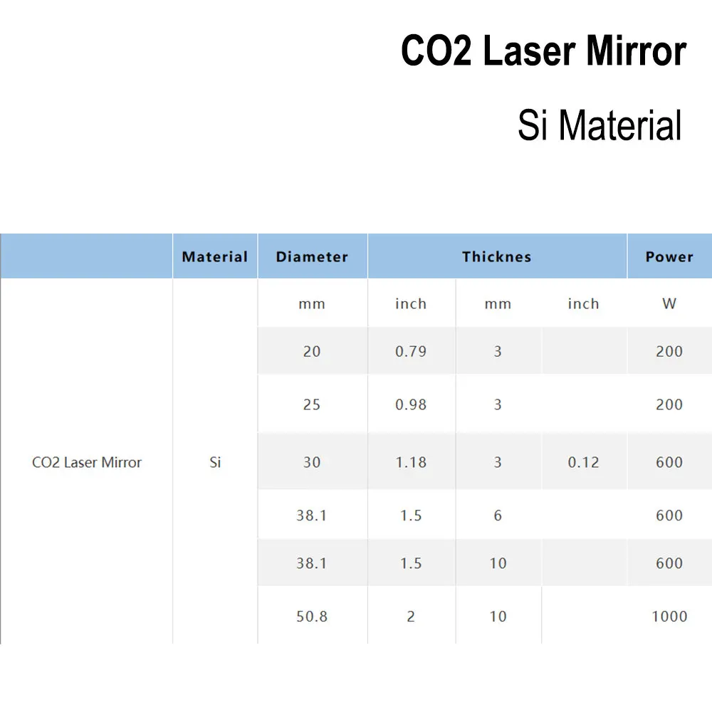 QDLASER New Co2 Laser Si reflective Mirrors for Laser Engraver Gold-Plated Silicon Reflector Lenses Dia. 20 25 30 38.1 50.8mm