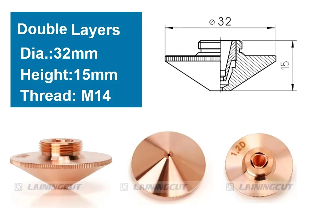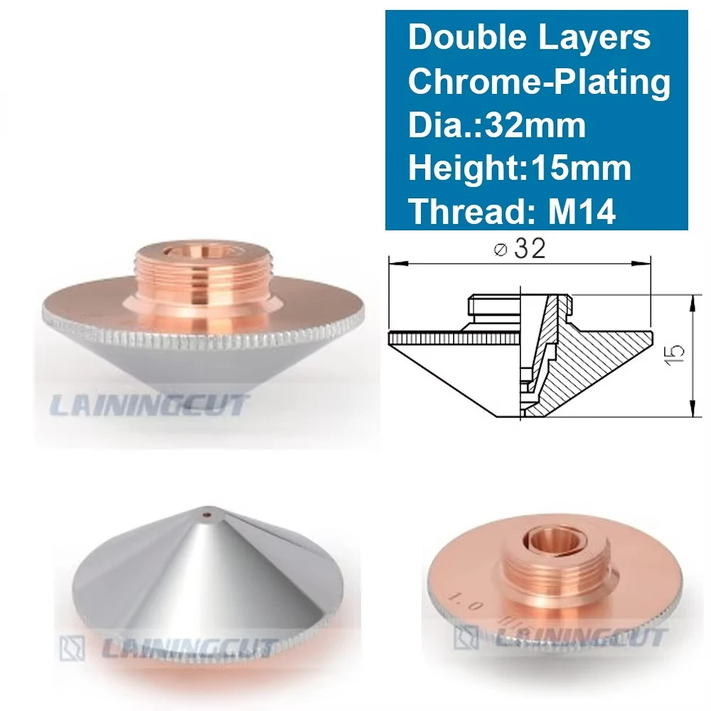 QDLASER OEM Double Layers Laser Nozzle Dia.32mm H15 M14 Caliber 0.8 - 4.0 for Precitec 1064nm Fiber Laser Cutting Head Machine