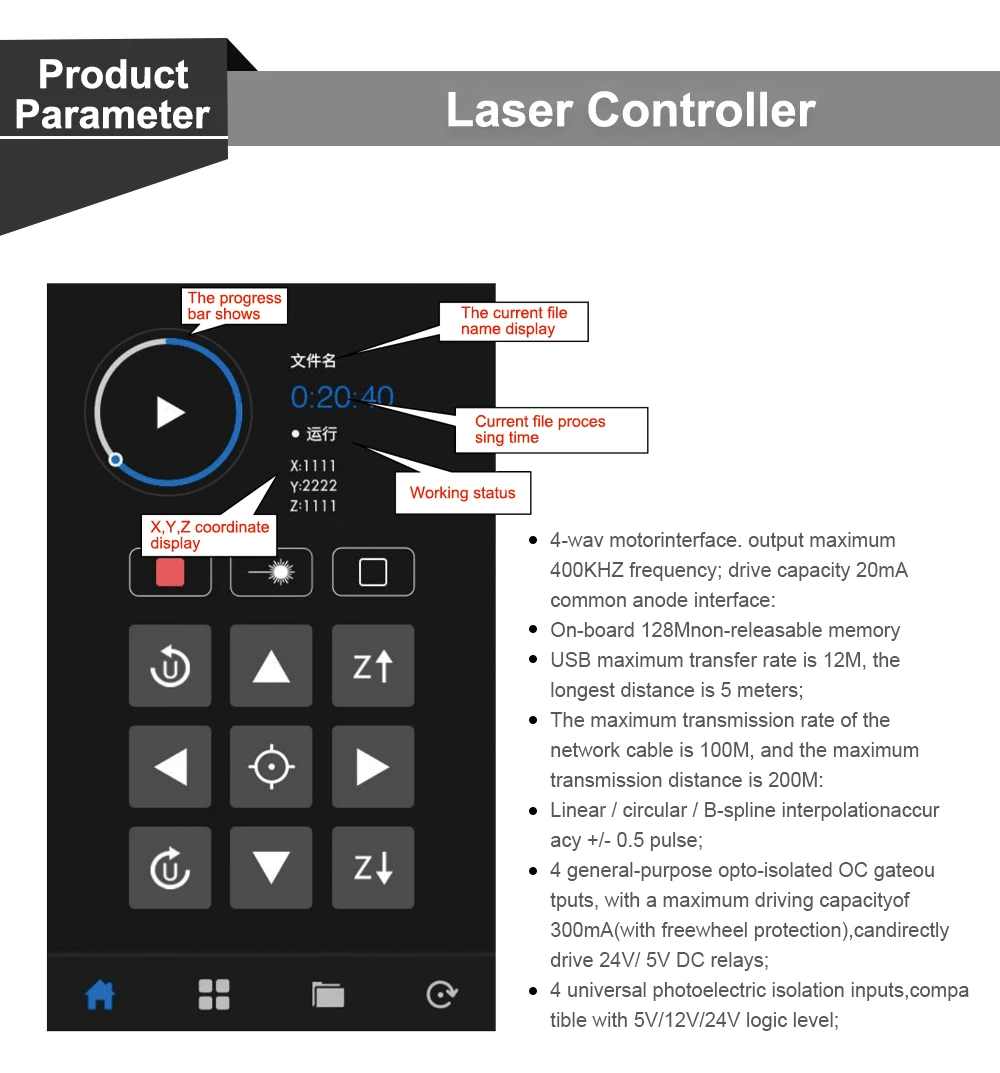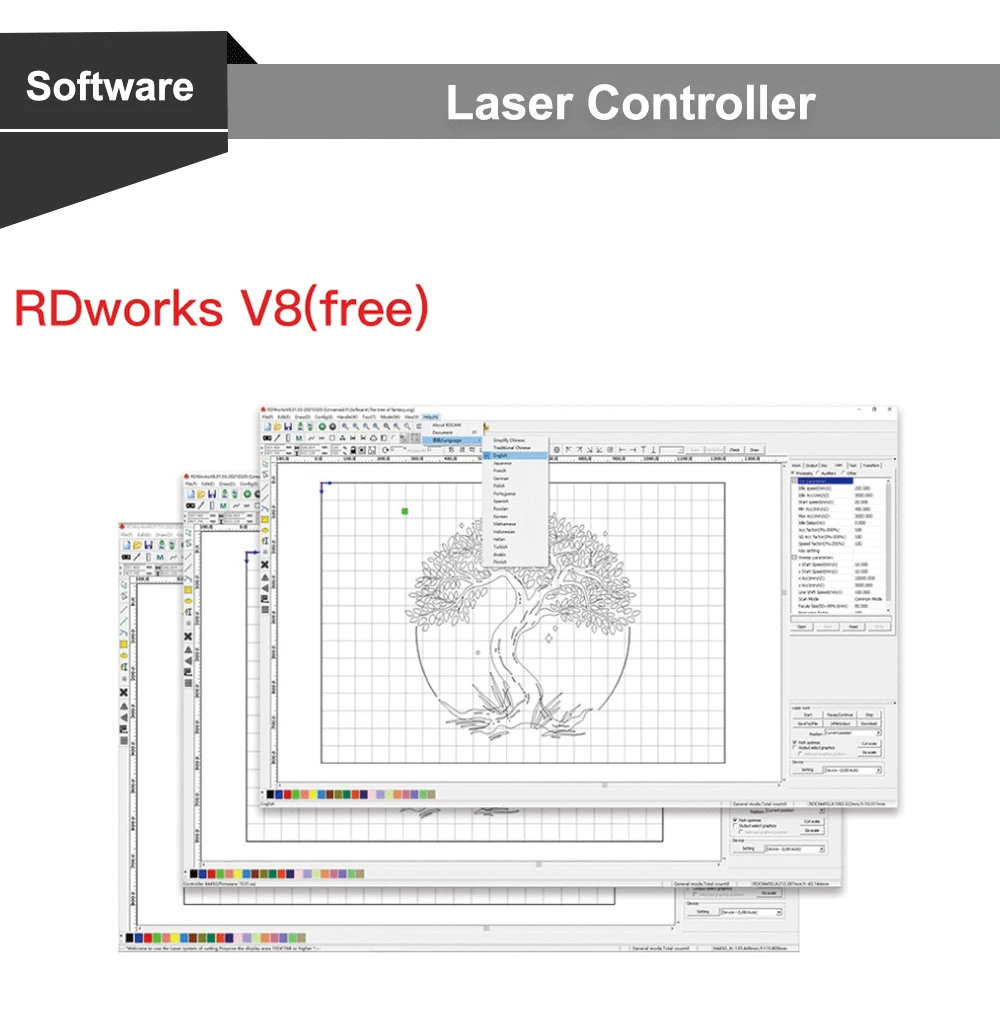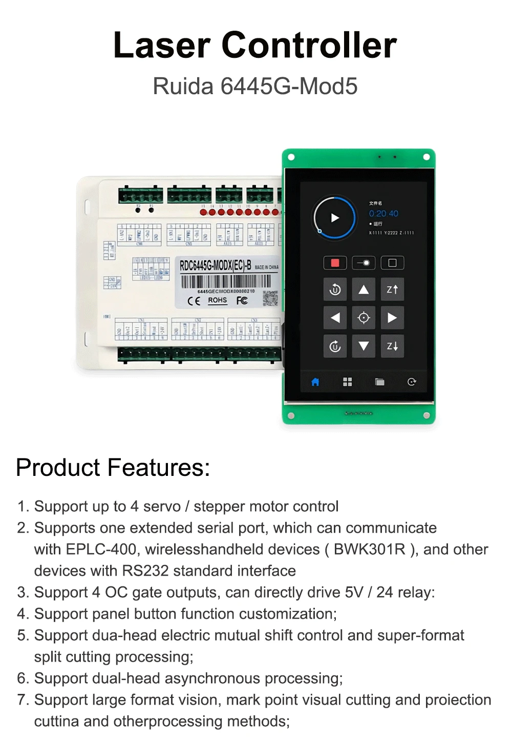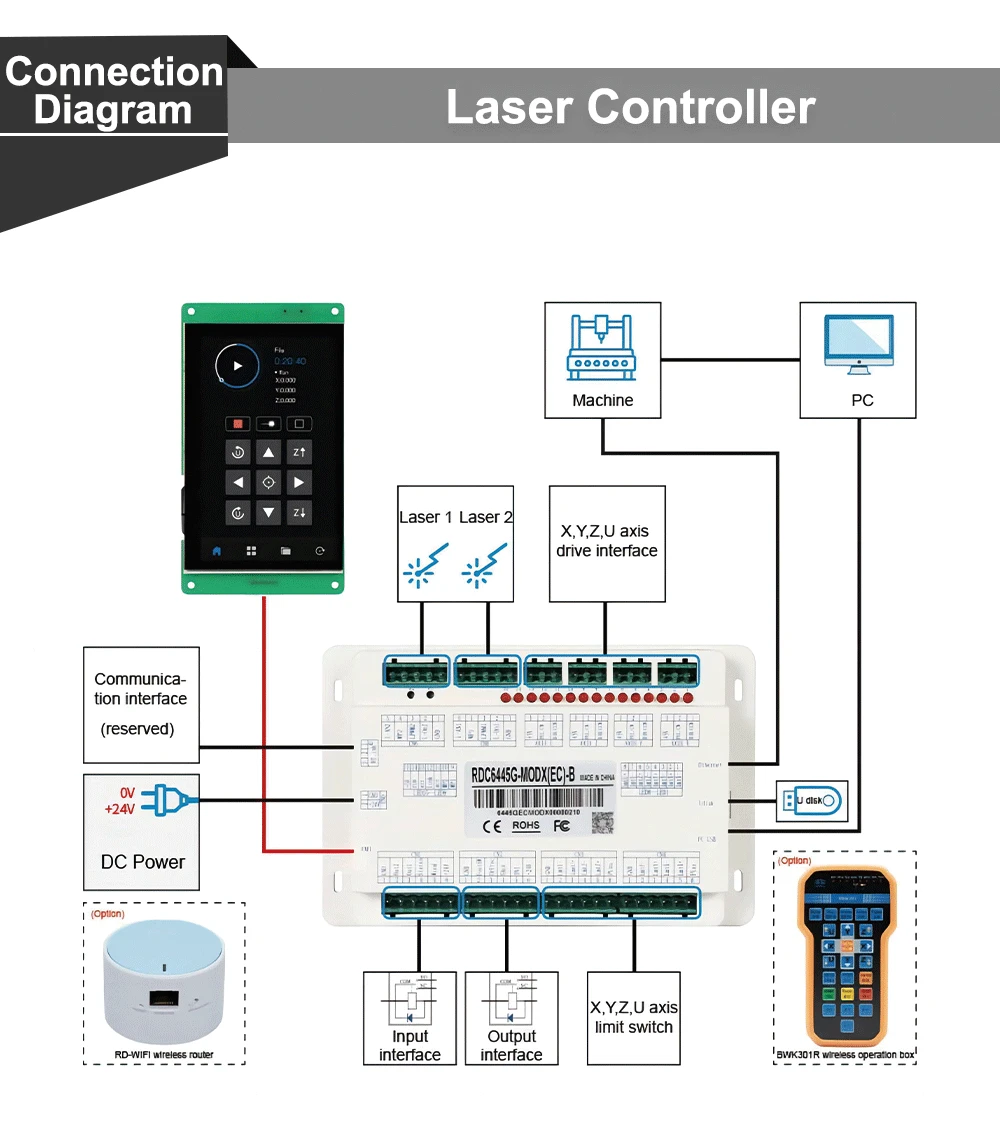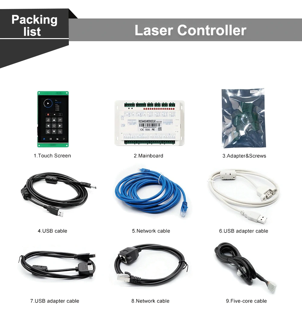 QDLASER Ruida 6445G-Mod5 Touch Screen CO2 Laser Controller DIY Panel Button RDWorks V8 Software for CO2 Laser Cutting Machine