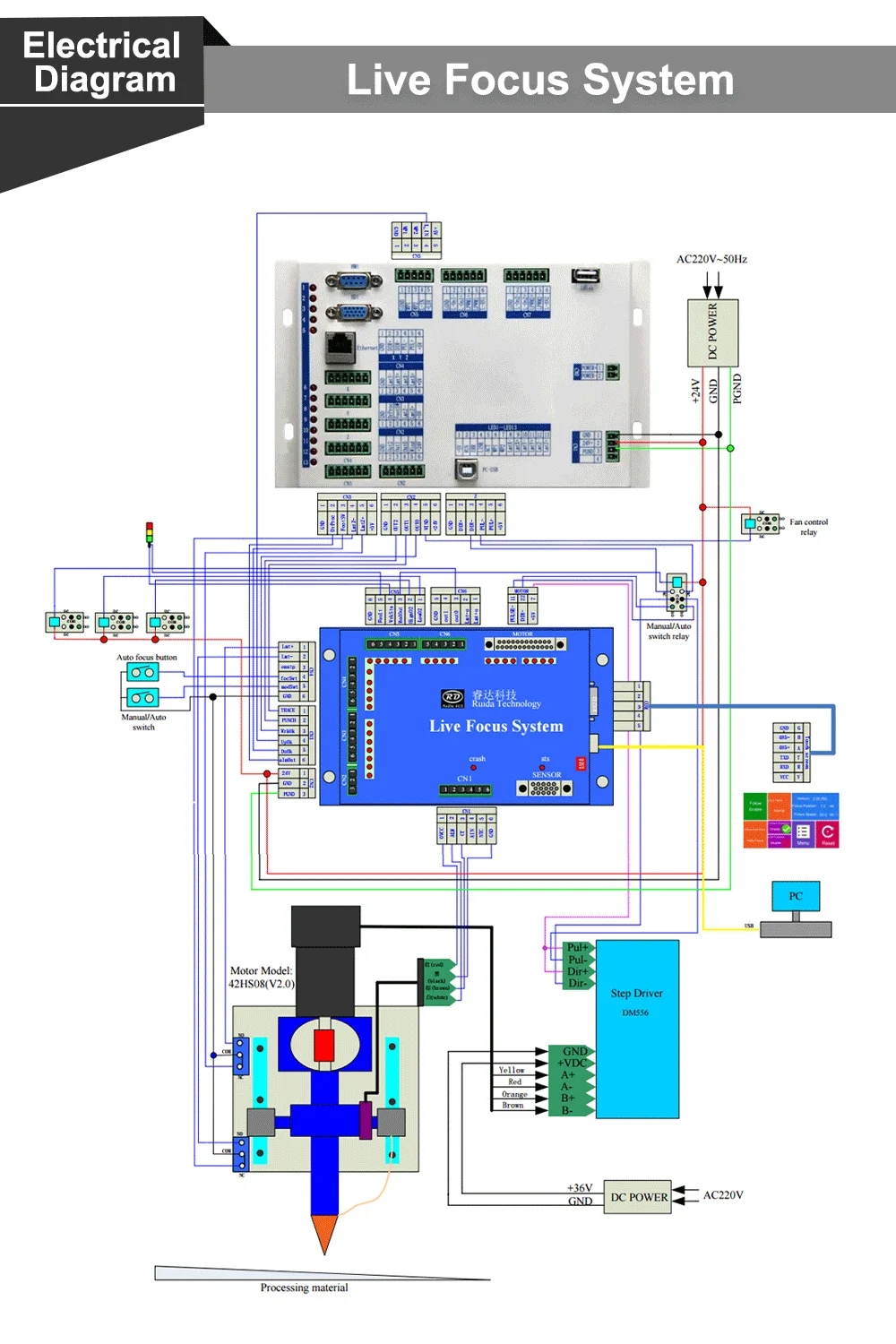 QDLASER Ruida LFS-AM-T43-AP01(S) Metal Cutting Real-time Focus System Amplifier and Amplifier Connection Cable for Laser Machine