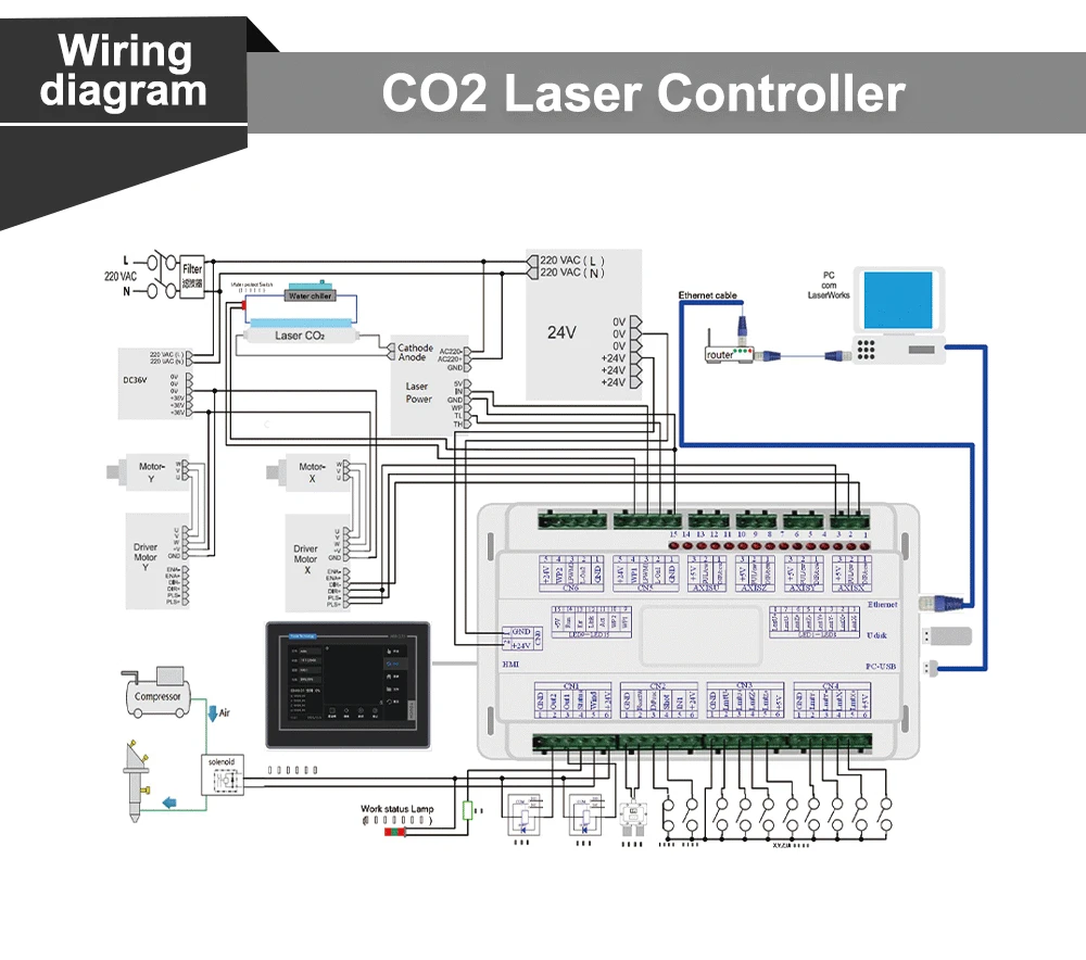 QDLASER Ruida RDC6445GT Stand-alone laser cutting control system with touch screen White/Black for Co2 laser engraving machine