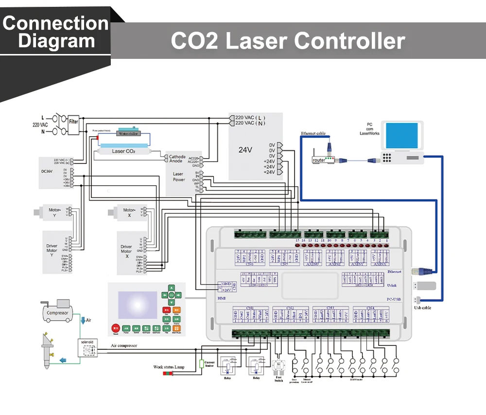 QDLASER Ruida RDV6442G+CCD Camera Co2 Laser Controller System for Co2 Laser Cutting and Engraving Machine