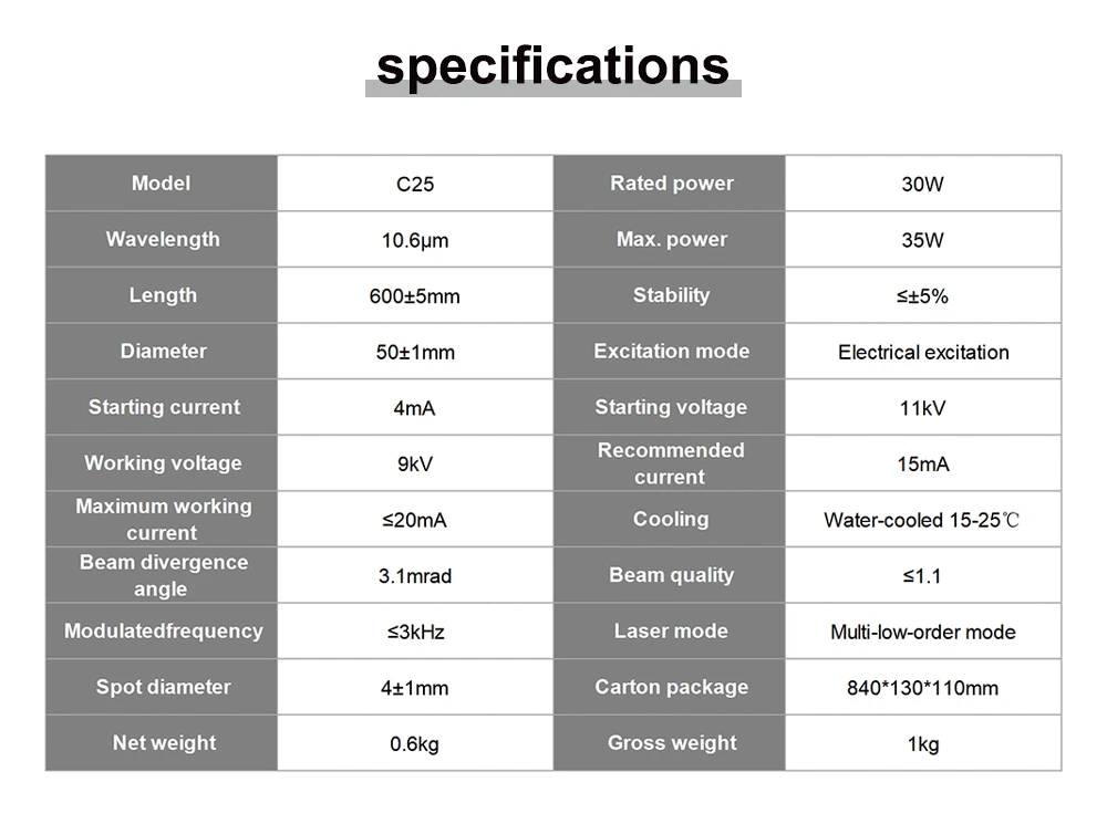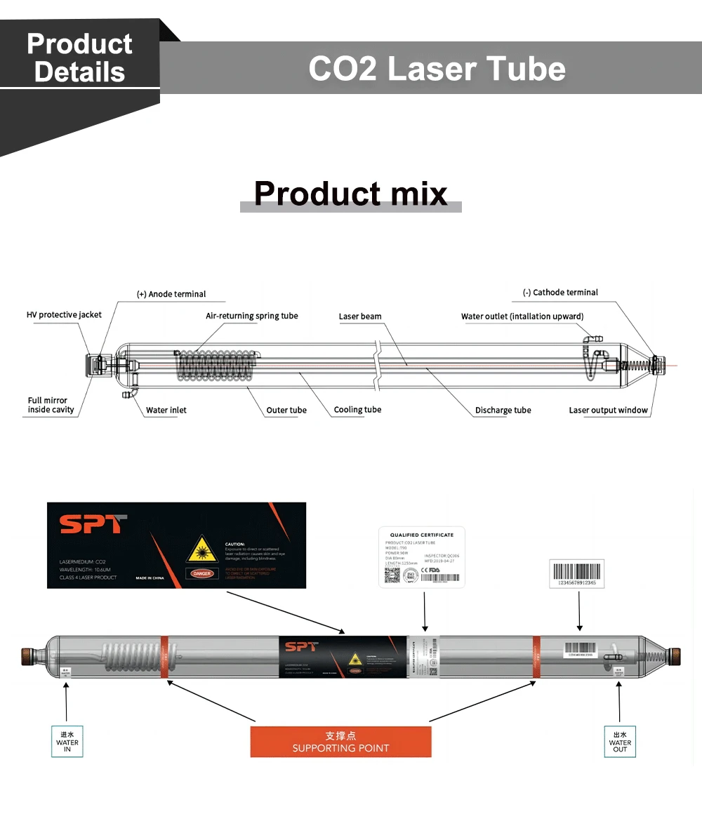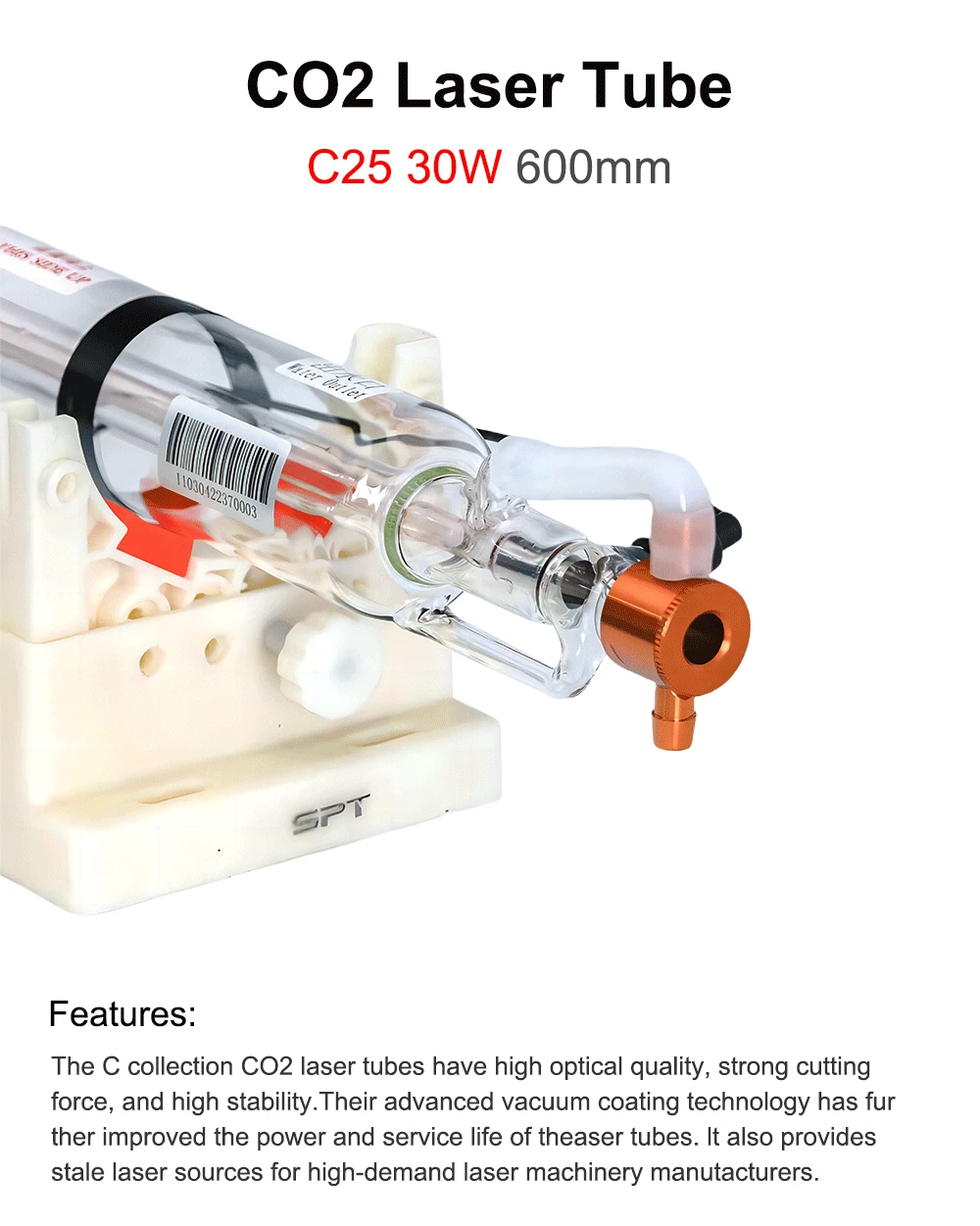 QDLASER SPT C25 30-35W Co2 Laser Tube Length 600mm Diameter 50mm for CO2 Laser Engraving Cutting Machine