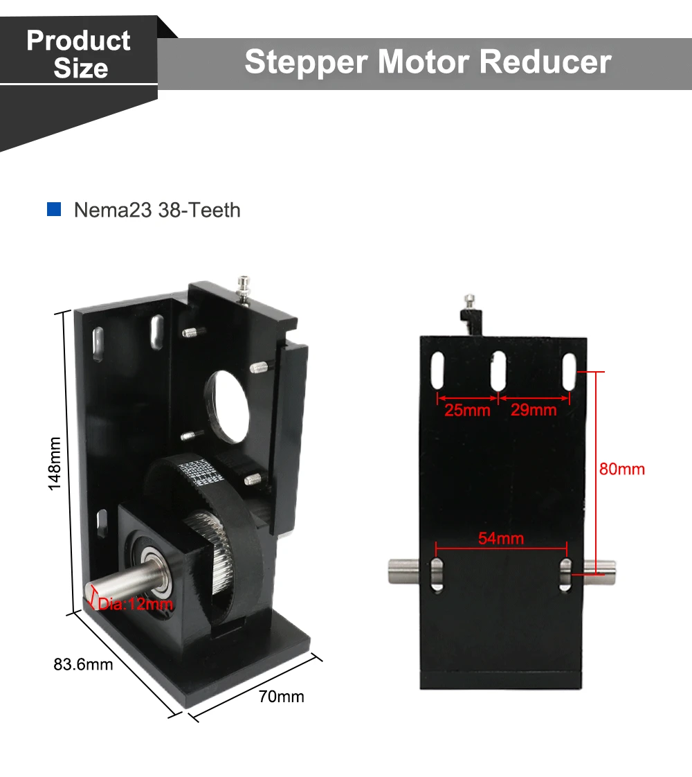QDLASER Stepper Motor Reducer Nema23 38-Teeth/ Nema23 60-Teeth/ Nema34 72-Teeth for CO2 Laser Engraving Machine Motor Block Set