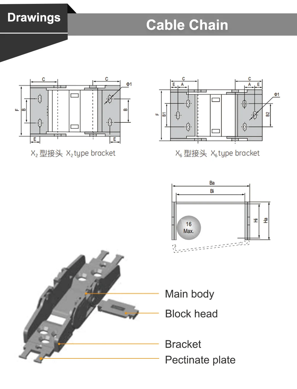 QDLASER Transmission Cable Chain 18x18 18x25 18x37 18x50 Semi-Enclosed Interior Opening Drag Plastic Towline Transmission