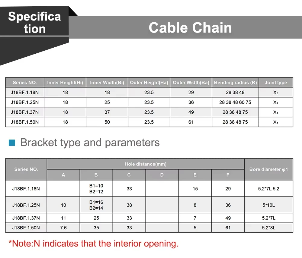 QDLASER Transmission Cable Chain 18x18 18x25 18x37 18x50 Semi-Enclosed Interior Opening Drag Plastic Towline Transmission