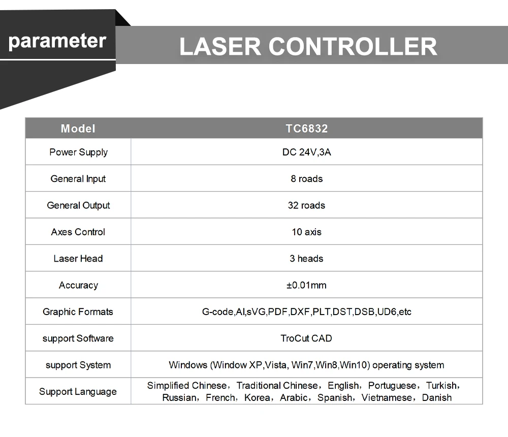QDLASER Trocen TC6832 Spindle Cutting Vibrating Knife Control System Co2 Laser Controller for Engraving Machine High Speed DSP