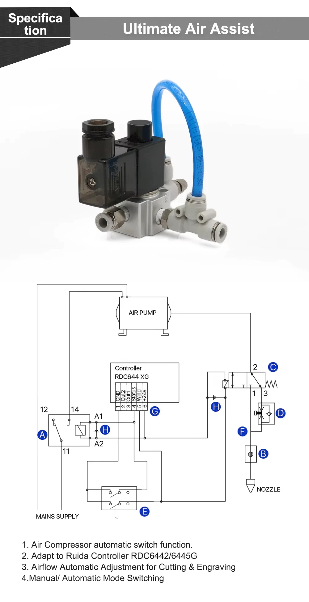QDLASER Ultimate Air Assiast Set Pneumatic Solenoid Value Relay 6mm for CO2 Laser Cutting and Engraving Machine