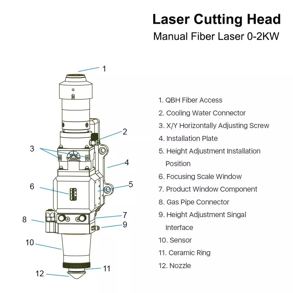 QDLASER WSX 0-2KW Fiber Laser Cutting Head KC13 Manual Cutting Head 2000W for Metal Cutting