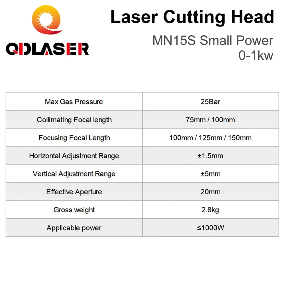 QDLASER WSX Fiber laser cutting head 0-1KW MN15S Small Power Max Laser Power 1000W Focal length 75mm / 100mm for Metal Cutting