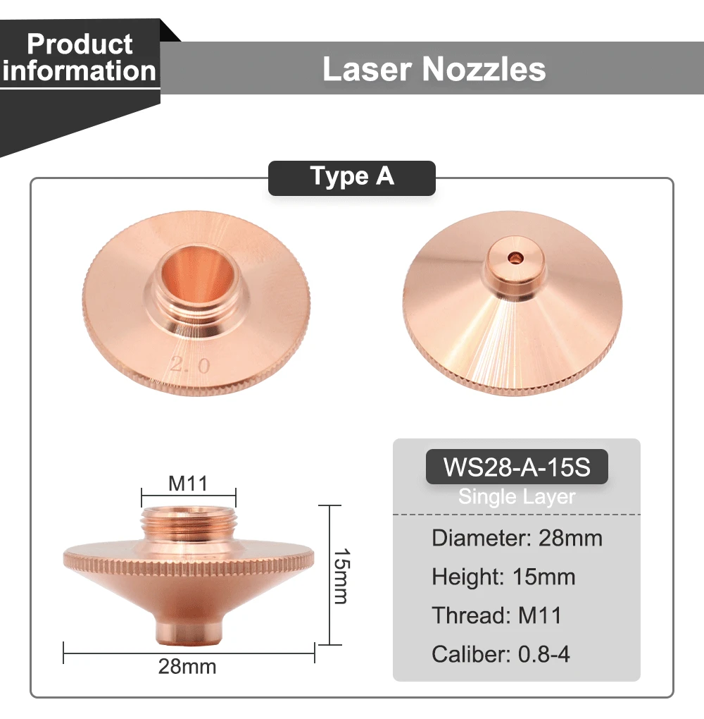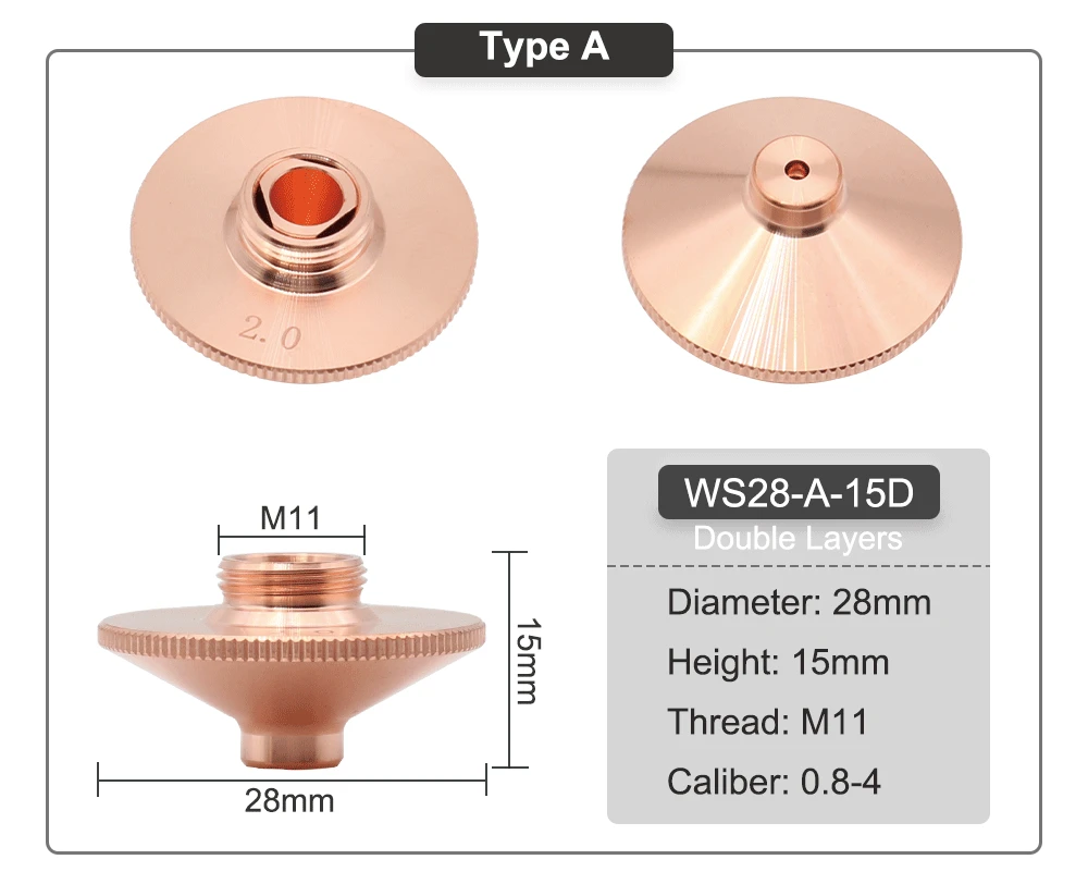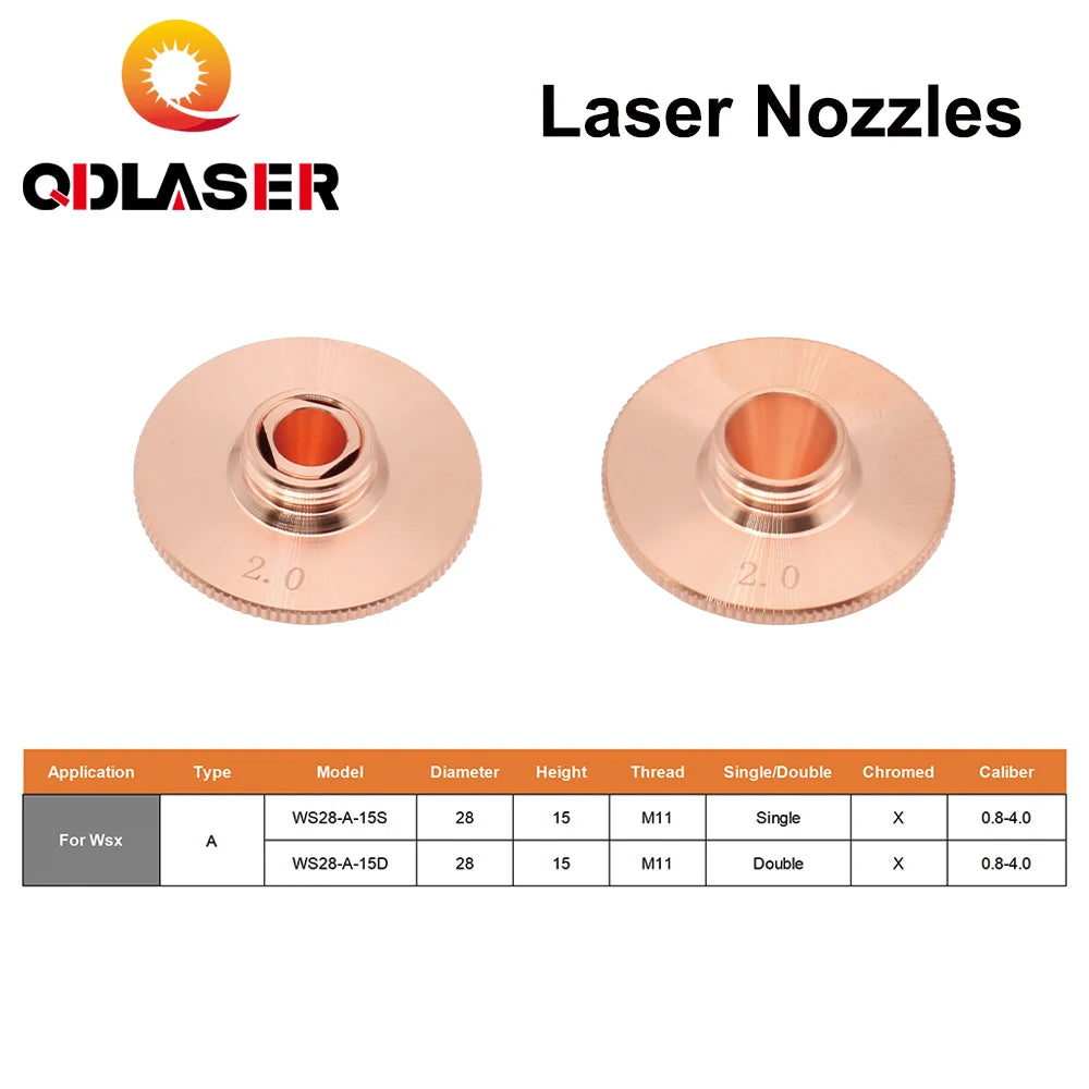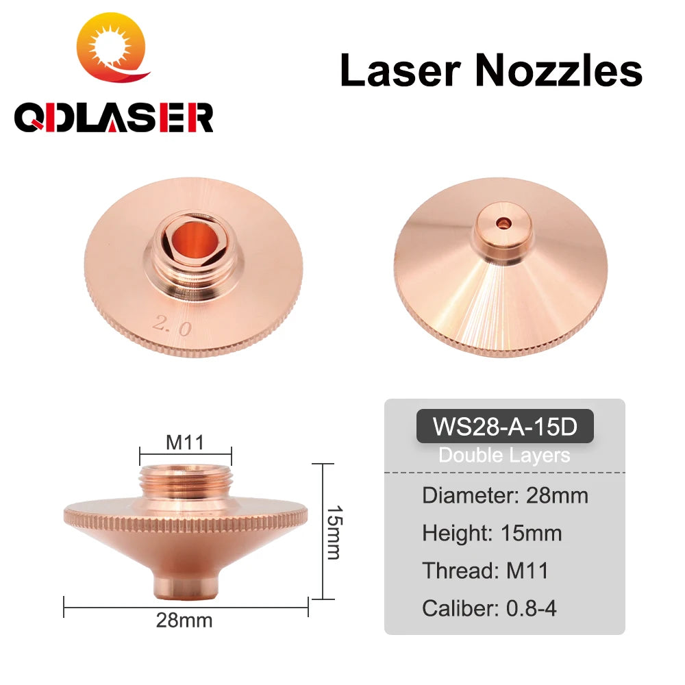 QDLASER WSX Laser Nozzles Single/Double Layers 10pcs/lot Dia.28mm H15 Caliber 0.8-3.0mm for WSX Fiber Laser Cutting Head