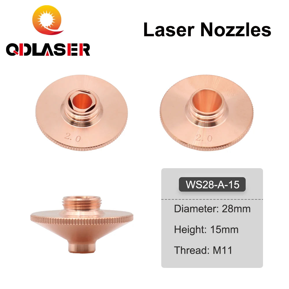 QDLASER WSX Laser Nozzles Single/Double Layers 10pcs/lot Dia.28mm H15 Caliber 0.8-3.0mm for WSX Fiber Laser Cutting Head