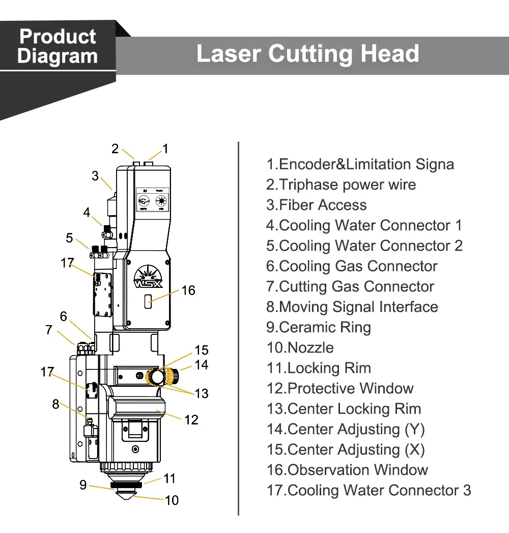QDLASER WSX NC60 Focusing Fiber Laser Cutting Head 0-6KW Automatic 6000W High Power F100/190mm QBH For Metal Cutting