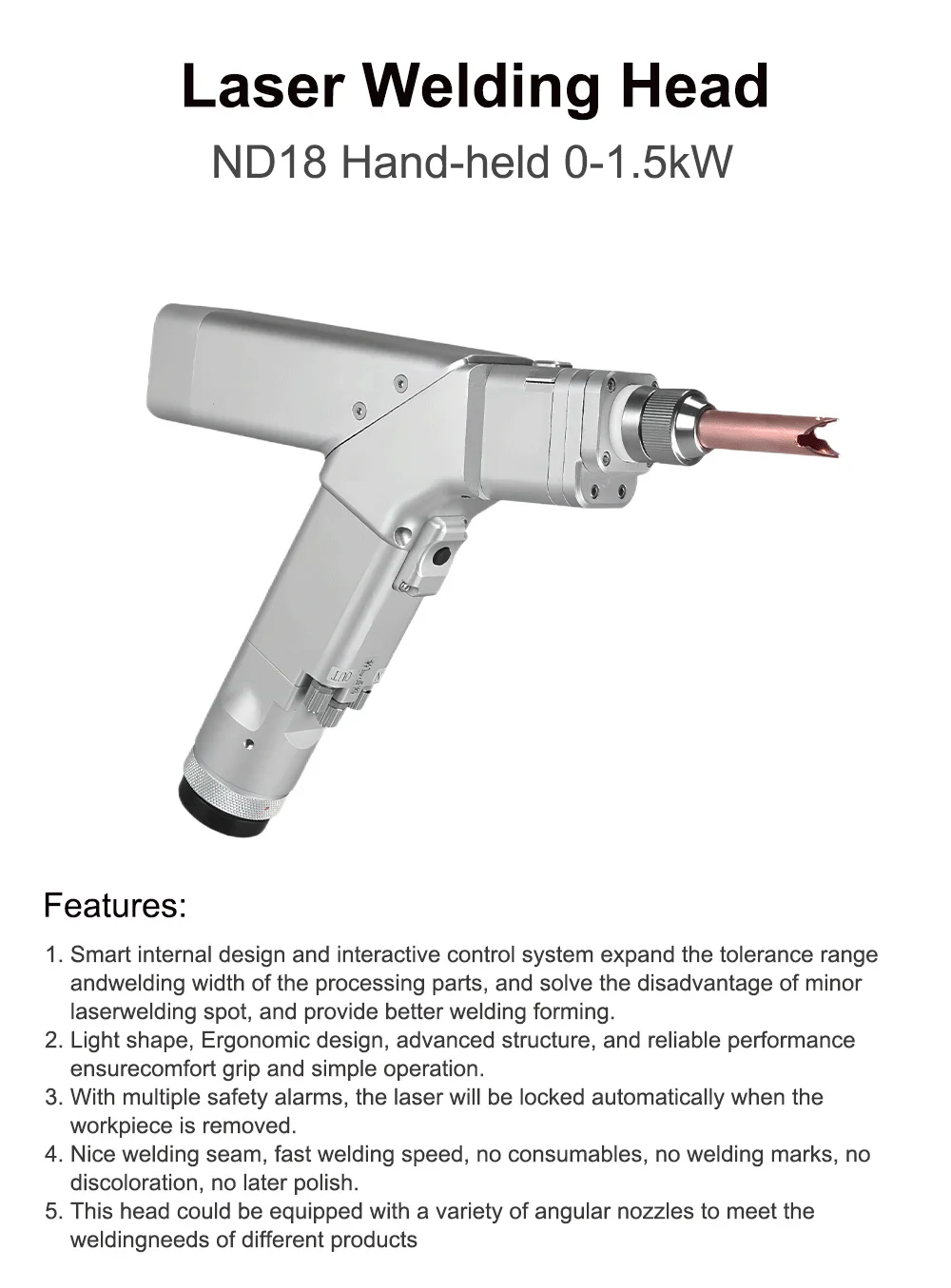 QDLASER WSX ND18 Handheld laser welding head 0-1.5KW Max Power 1500W FL 80mm/120mm with QBH Connector for Fiber Laser Machine