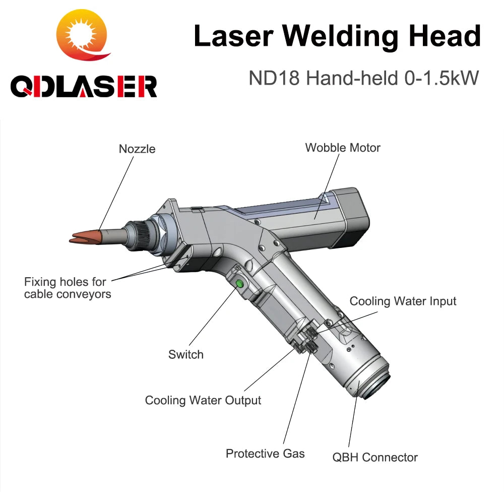 QDLASER WSX ND18 Handheld laser welding head 0-1.5KW Max Power 1500W FL 80mm/120mm with QBH Connector for Fiber Laser Machine