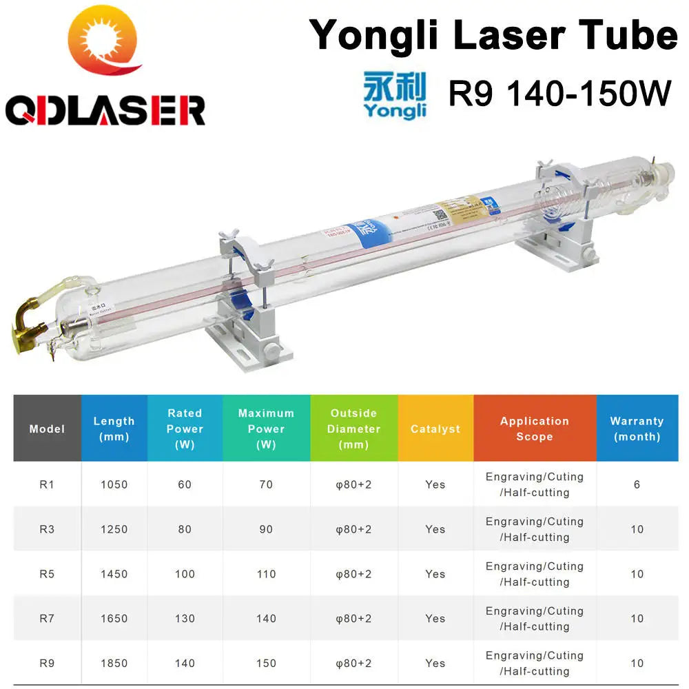 QDLASER Yongli High Power R9 Laser Tube Cutting Machine 140W Rated Power 160W Max Power 1850mm Length 80mm Diameter