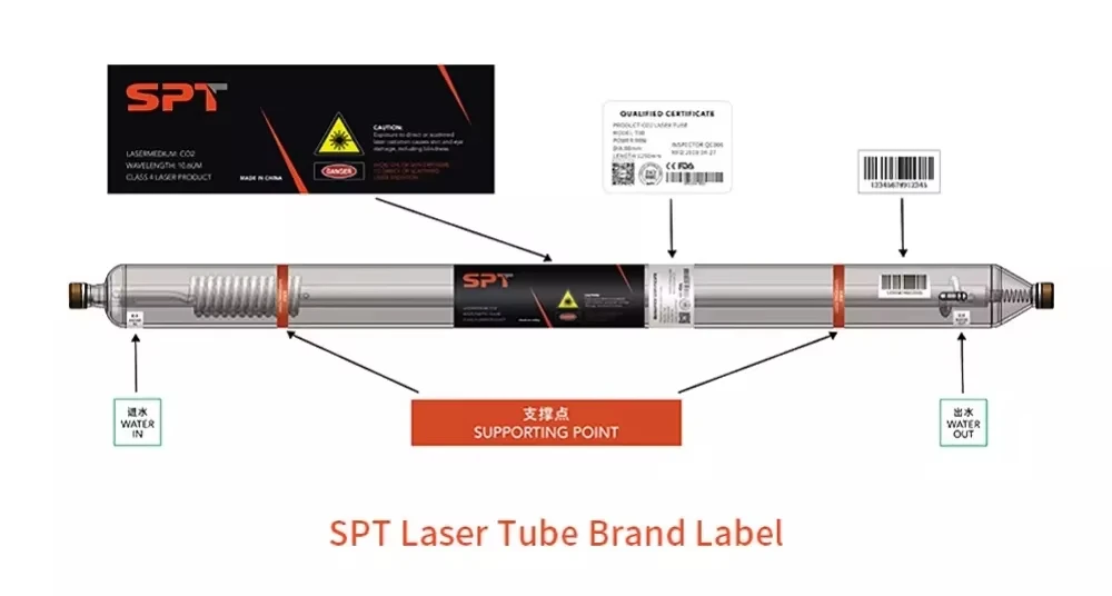 SPT C70 CO2 Laser Tube 60W-80W Length 1250mm Dia.55mm for Co2 Laser Engraving and Cutting Machine