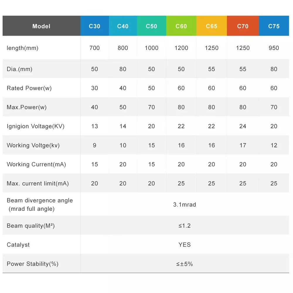 SPT C70 CO2 Laser Tube 60W-80W Length 1250mm Dia.55mm for Co2 Laser Engraving and Cutting Machine