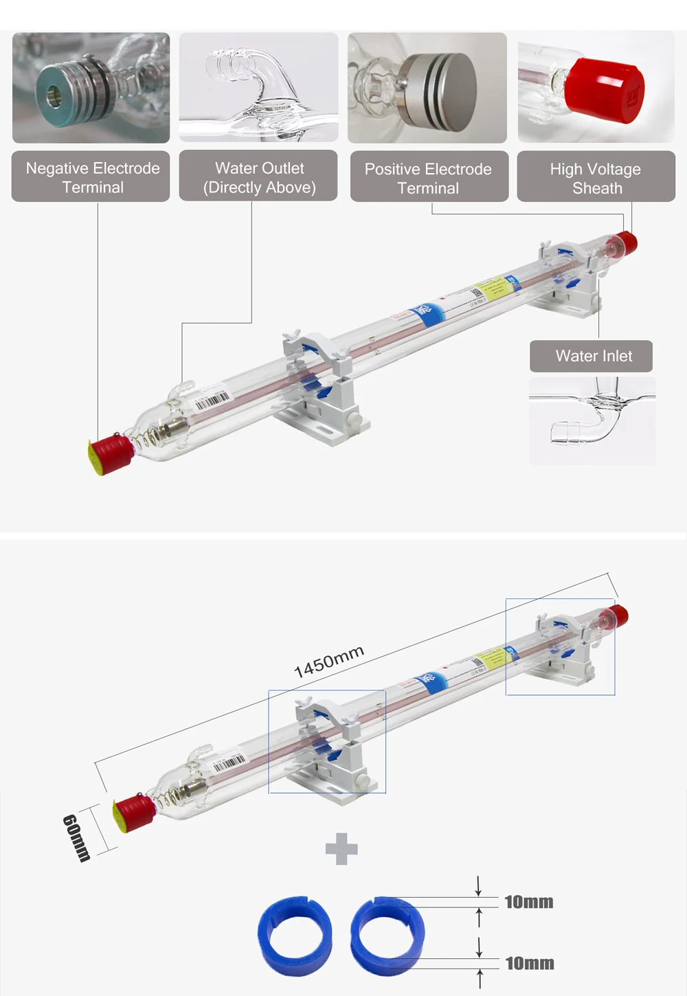 Yongli Laser Tube H4 100-110W Length 1450 Dia.60mm Wooden Box Packing for CO2 Laser Engraving Machine